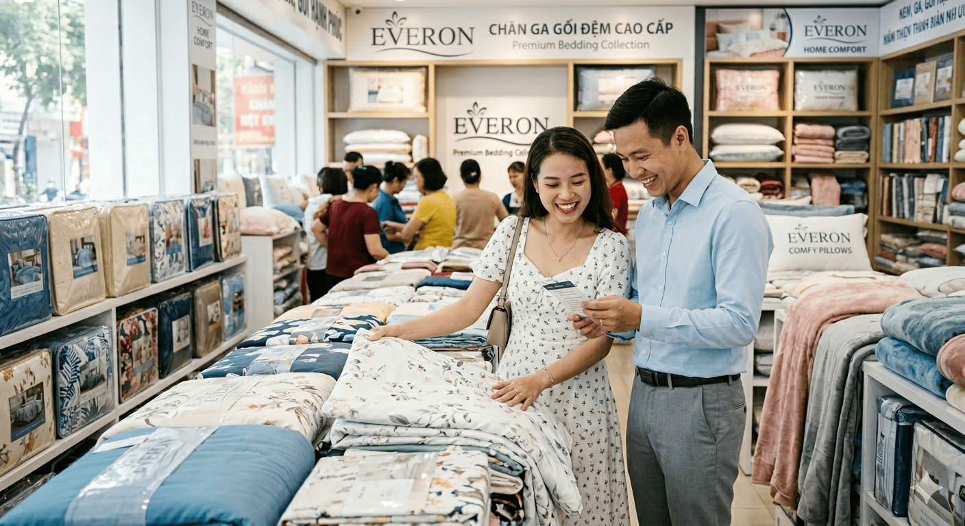 Thương hiệu Everon thuộc công ty Everpia là một trong những thương hiệu chăn ga gối đệm cao cấp quen thuộc với nhiều gia đình Việt.