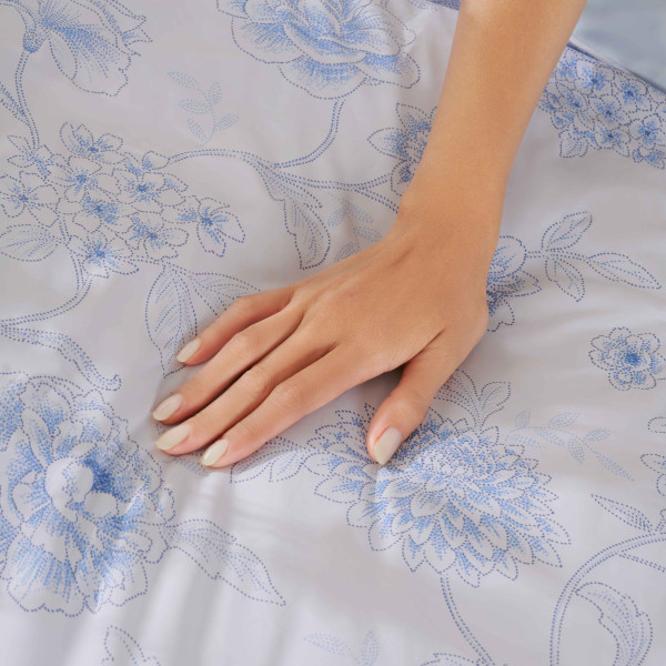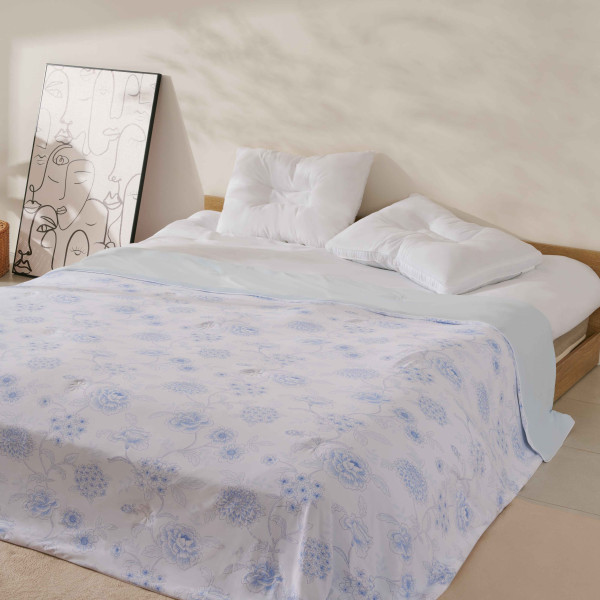 Chăn sử dụng chất liệu sợi làm mát cao cấp, có khả năng hấp thụ và phân tán nhiệt nhanh, giúp bề mặt luôn mát lạnh tự nhiên. Khi chạm tay vào,