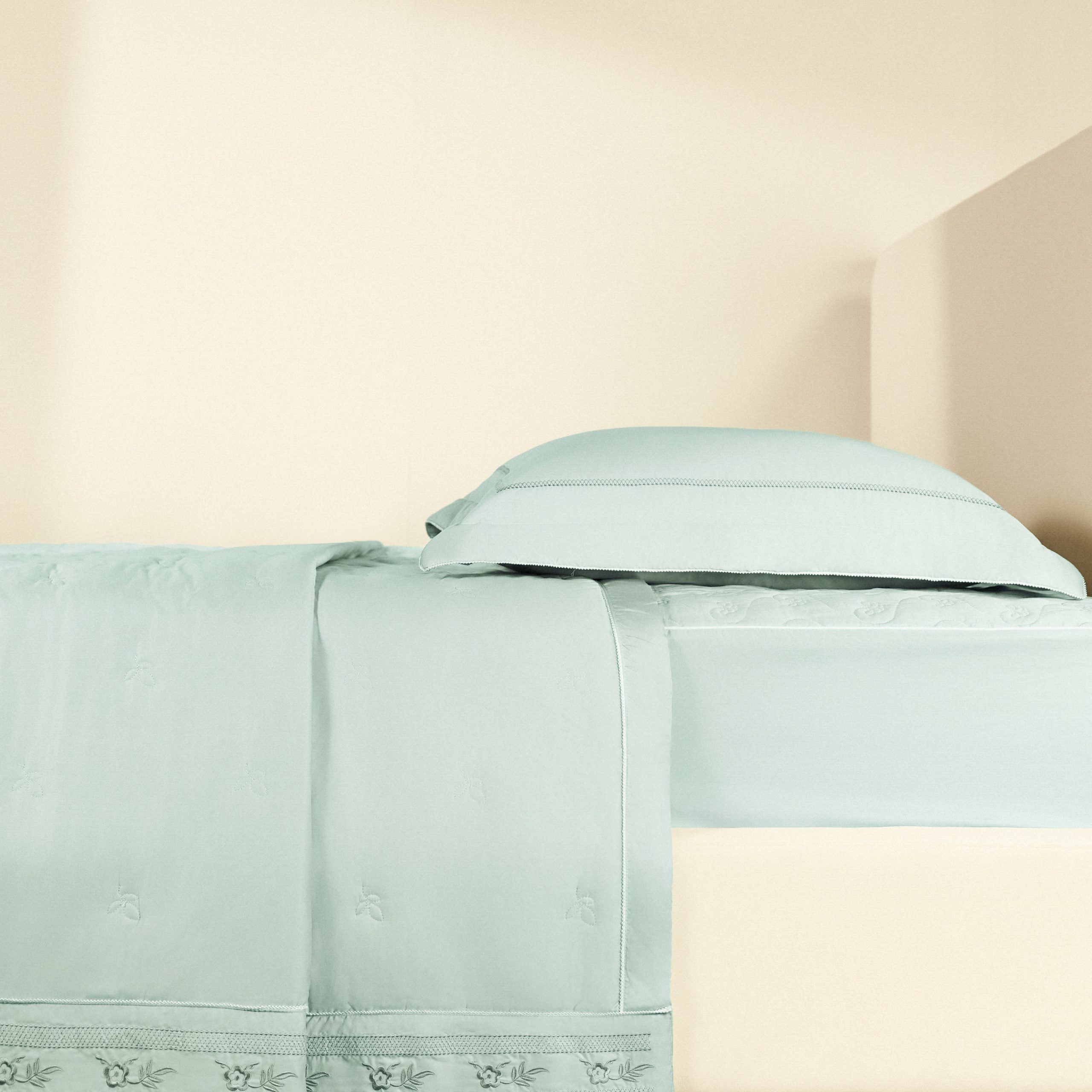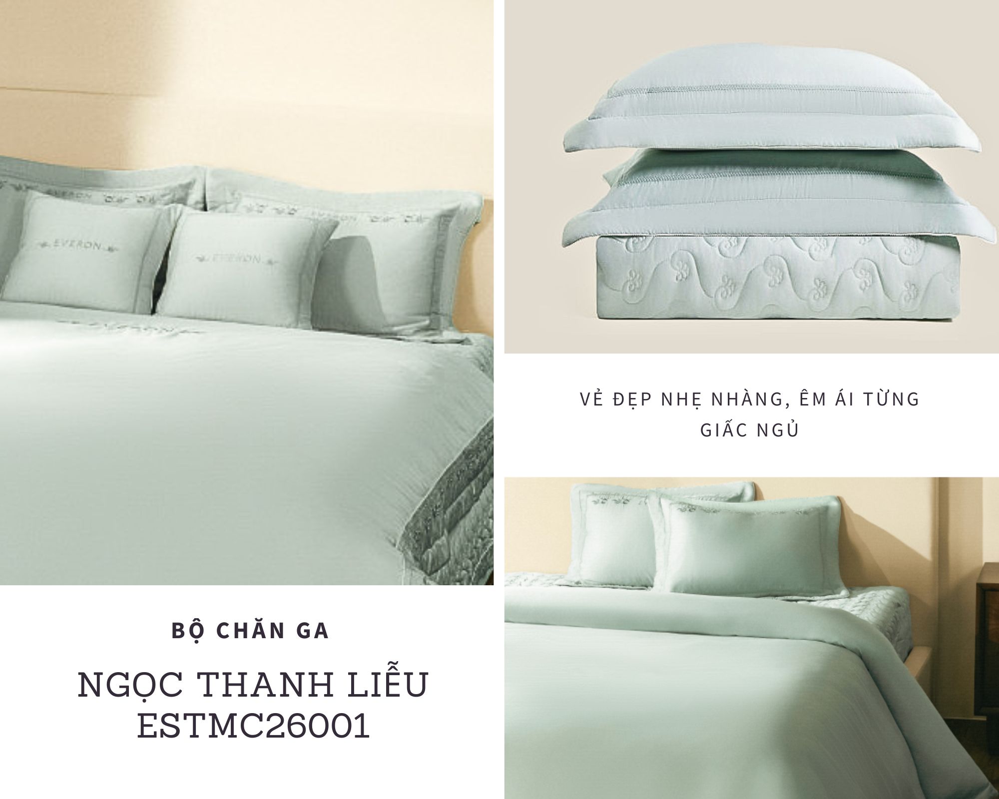 Bộ chăn ga gối Everon Ngọc Thanh Liễu – ESTMC26001 thuộc bộ sưu tập mới nhất The Essence of Nature – Tinh hoa từ thiên nhiên, lấy cảm hứng từ hình ảnh nhành liễu mềm mại đung đưa trong gió – biểu tượng cho nét đẹp dịu dàng, tinh khôi và an nhiên.