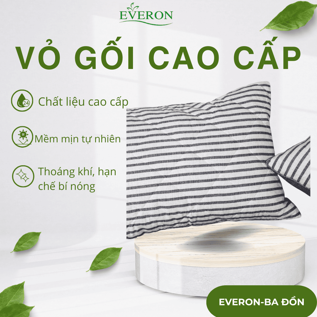 Mỗi chiếc vỏ gối Everon đều được gia công tỉ mỉ, cẩn thận trong từng chi tiết: đường chỉ chắc chắn, mép viền tinh tế và khóa kéo bền bỉ, đảm bảo độ